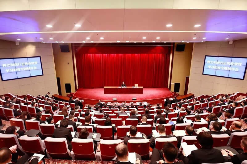 会议由省高院党组副书记、常务副院长许柏峰主持,省高院院领导、全体法官及副处级以上干部、学习教育工作专班人员,直属法院全体院领导、部门负责人及学习教育工作专班人员参会。