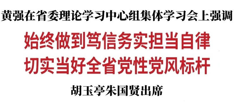 1月9日,省委书记黄强主持召开省委理论学习中心组集体学习会,专题学习习近平总书记在中共中央政治局民主生活会上的重要讲话精神。他强调,要深入学习领会习近平总书记关于党的建设和党的自我革命的重要思想,以及关于加强党的纪律建设、作风建设等重要论述,进一步统一思想、深化认识、提高站位,始终做到笃信、务实、担当、自律,切实当好全省党性党风标杆。省委副书记、省长胡玉亭,省政协主席朱国贤出席会议。