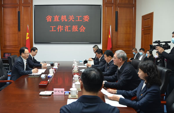 调研期间,景俊海主持召开座谈会。省委常委、省委秘书长、省直机关工委书记胡家福介绍省直机关党建工作情况。景俊海指出,近年来,省直机关工委坚决贯彻习近平总书记关于机关党的建设重要论述精神,敢于担当、积极作为、狠抓落实,充分彰显政治机关属性、释放服务振兴效能、激发党员队伍活力,机关党建质量水平得到大力提升。
