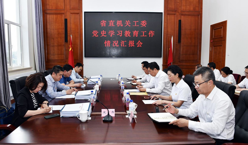 在工作情况汇报会上,省直机关工委常务副书记刘曼抒汇报了前一段工委开展党史学习教育的具体情况,指出了当前存在差距和不足,并交流了下一步工作打算。自党史学习教育开展以来,省直机关工委深入学习贯彻习近平总书记关于党史学习教育的重要讲话重要指示精神,精准把握“双定位”,全面履行“双职责”,扎实推进工委自身和省直机关党史学习教育高标准高质量开展。一是着力压实政治责任,做高标准动员部署的表率;二是着力突出主题主线,做高质量推进落实的表率;三是着力打造特色亮点,做高水平督促指导的表率。