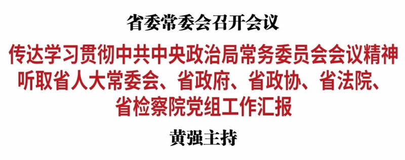 1月14日,省委书记黄强主持召开省委常委会会议,传达学习贯彻1月8日中共中央政治局常务委员会会议精神,听取省人大常委会、省政府、省政协、省法院、省检察院党组2025年工作汇报,研究部署今年工作。